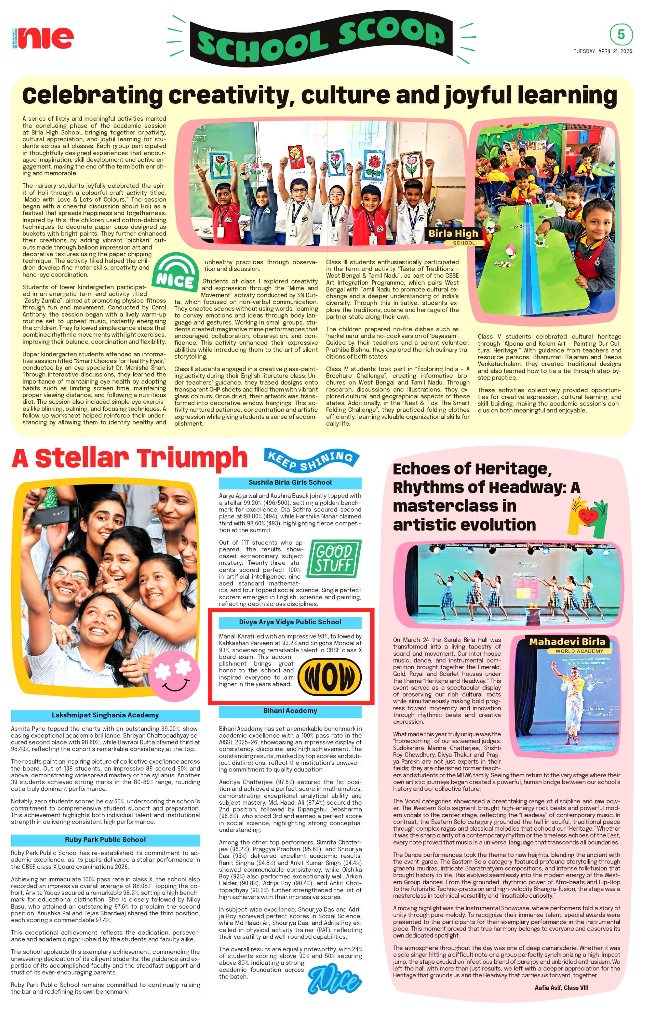 YOU MUST BE THE CHANGE YOU WISH TO SEE IN THE WORLDStatement of intent Divya Arya Vidya Public School, BishnupurYou would like to be the best that you can be a happy, confident and caring person who is content and to be ‘You’. You should love learning and be inspired to learn for life . To dis